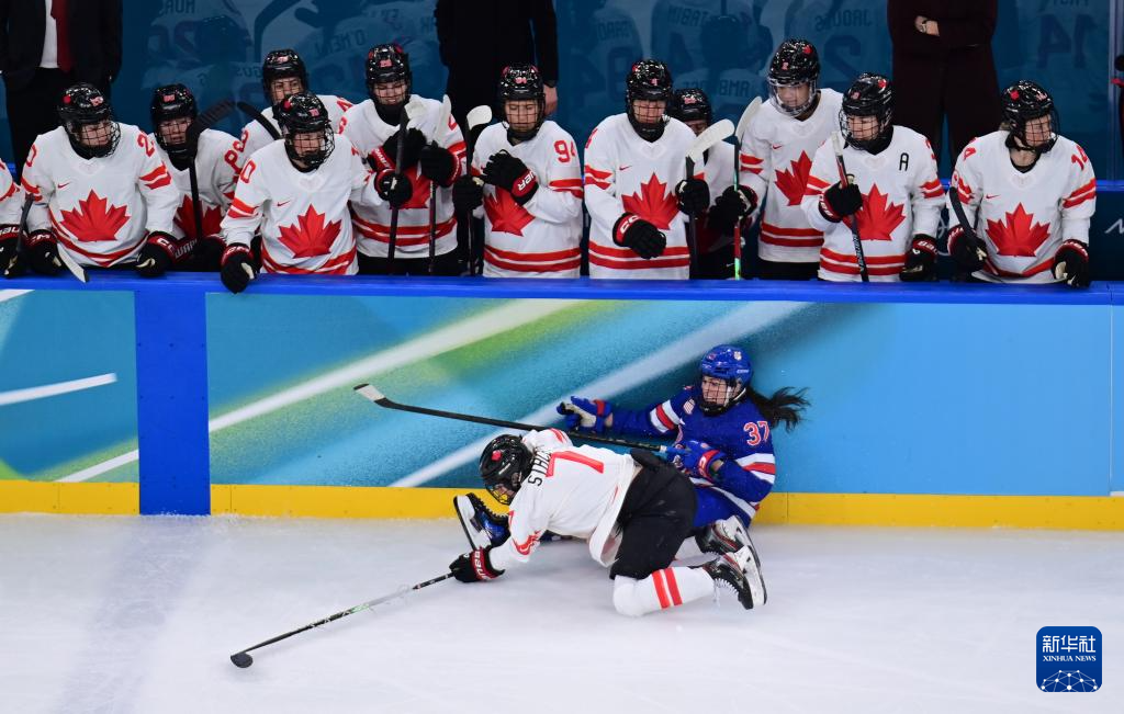 2月19日,加拿大队球员奥尼尔(右二)在比赛中射门。