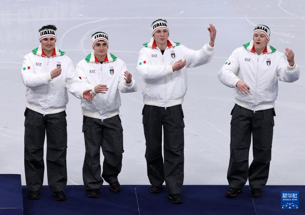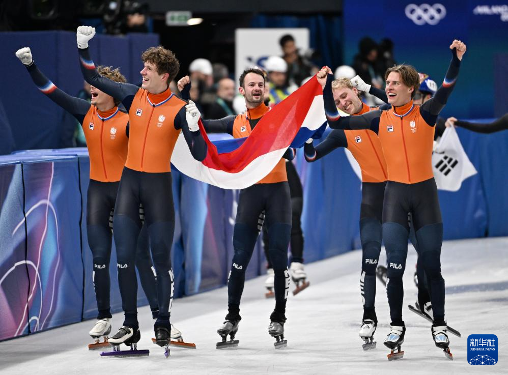 当地时间2月20日,米兰-科尔蒂纳冬奥会短道速滑男子5000米接力A组决赛在意大利米兰举行。