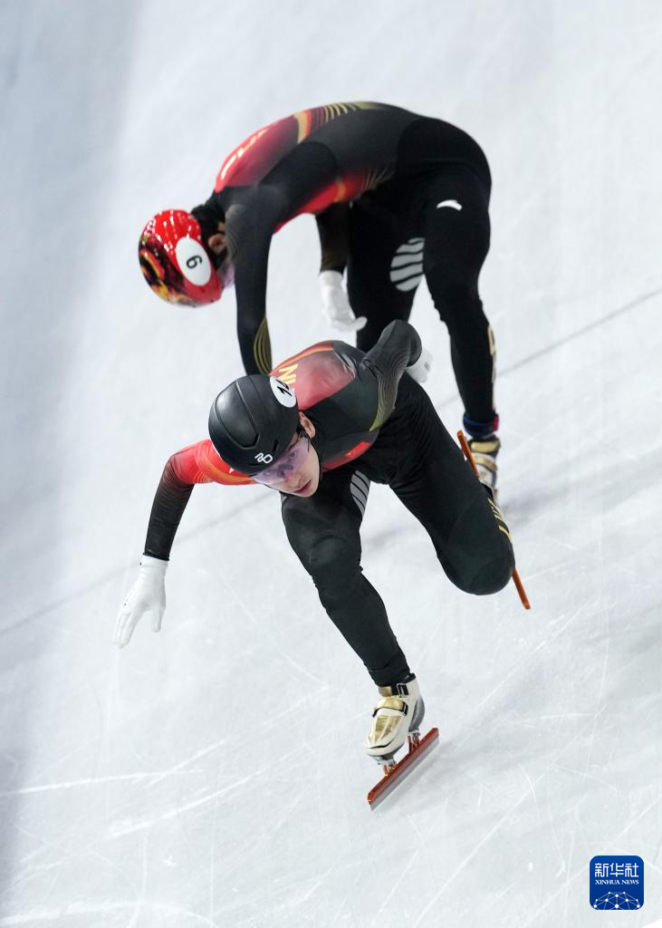 2月20日,中国队选手刘少昂(右)在比赛中冲过终点线。