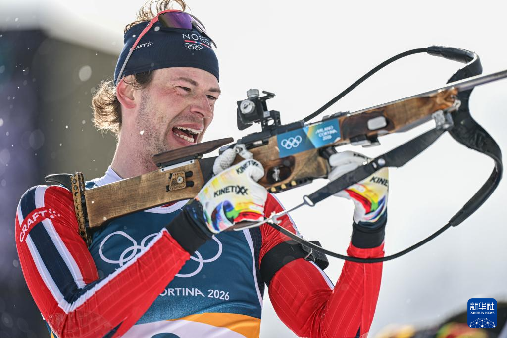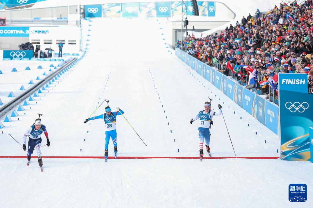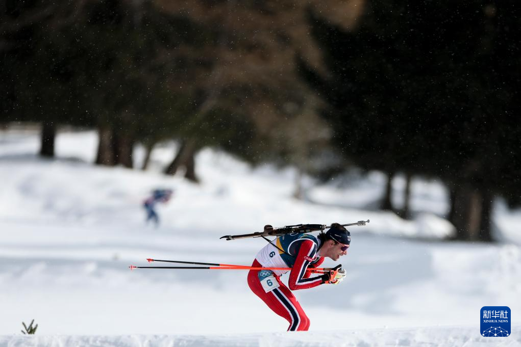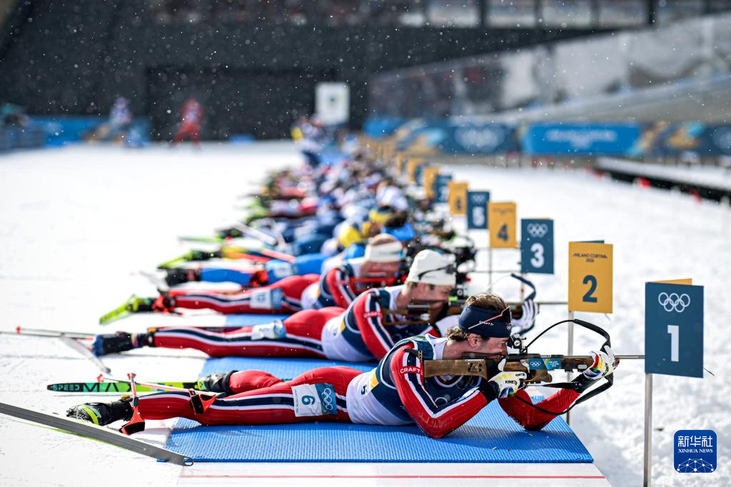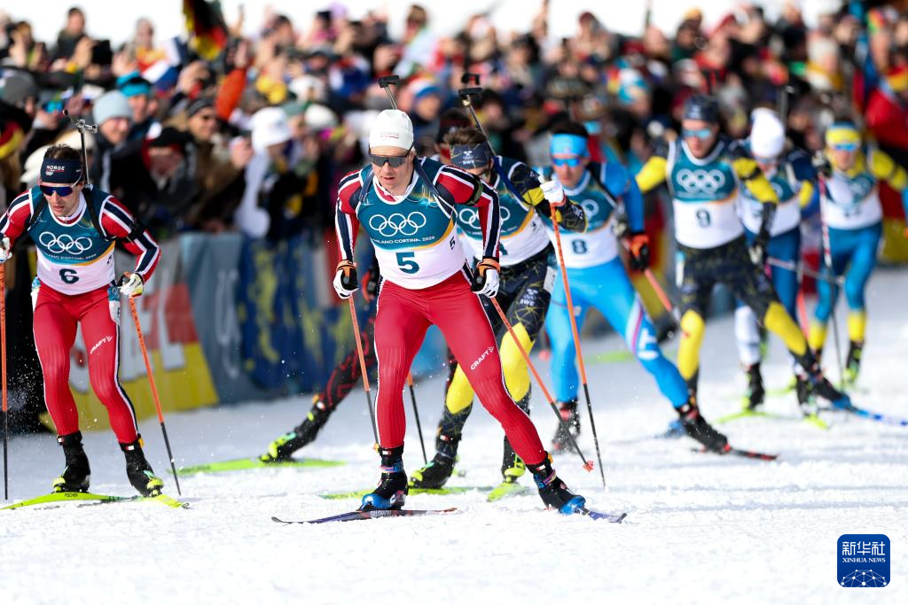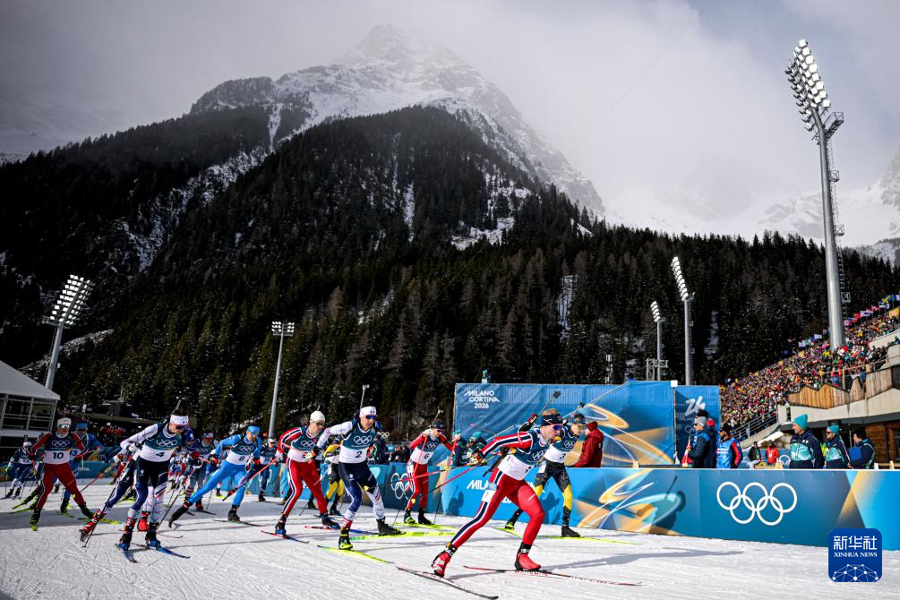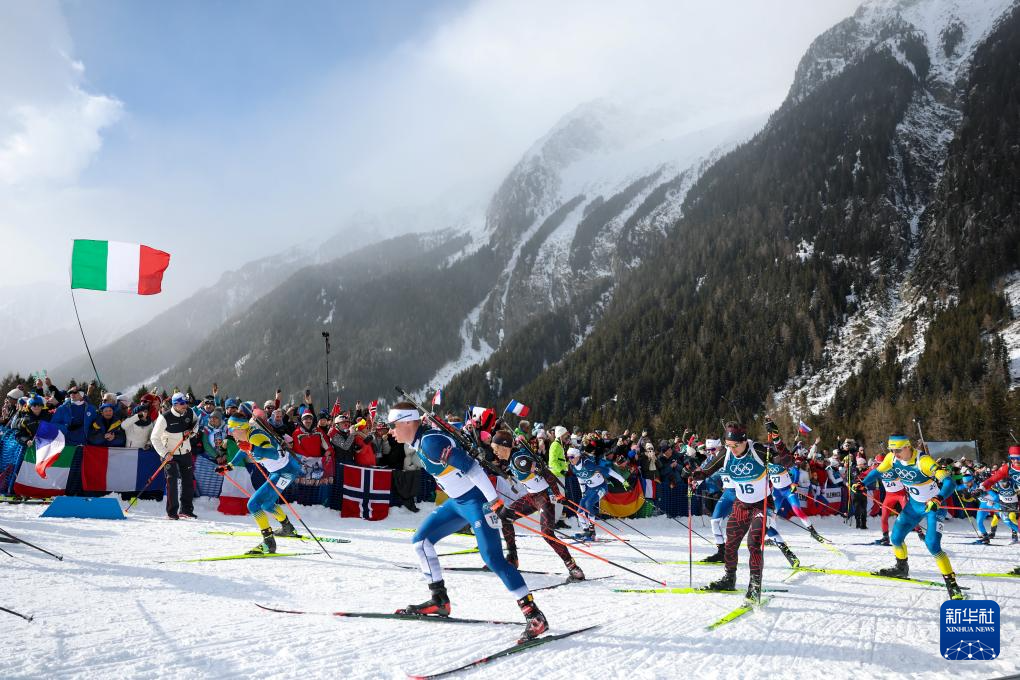 当地时间2月20日,米兰-科尔蒂纳冬奥会冬季两项男子15公里集体出发比赛在意大利安泰塞尔瓦举行。