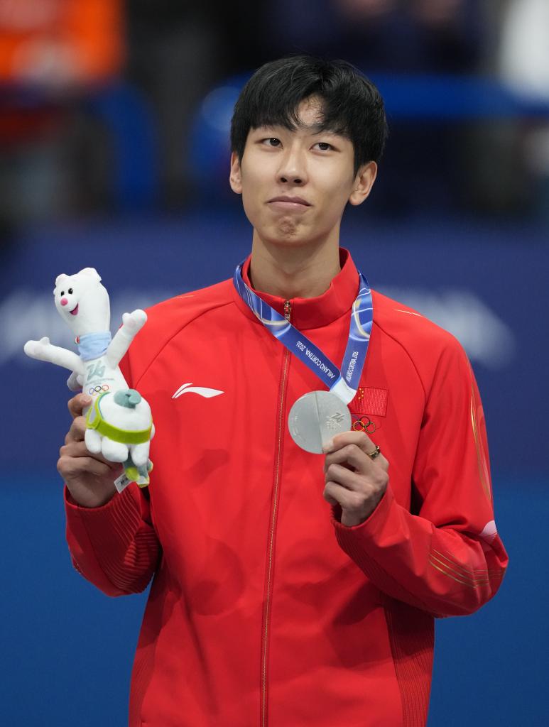 2月12日,孙龙在男子1000米颁奖仪式上。新华社记者 薛宇舸 摄