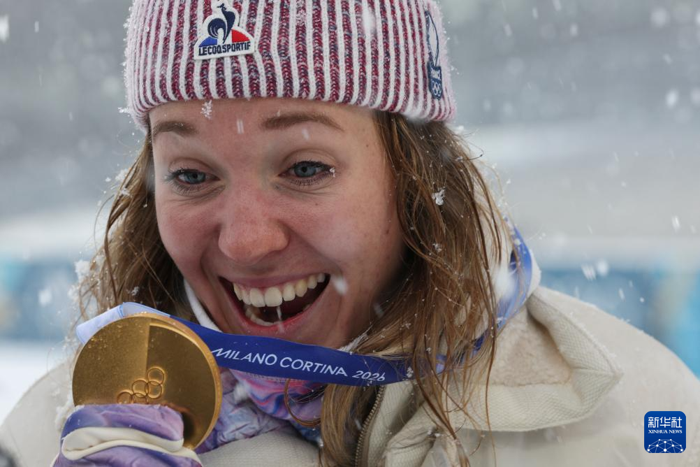 2月21日,法国选手米舍隆在比赛中。她获得冠军。