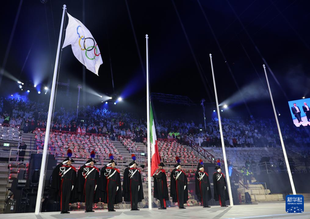 这是2月22日在闭幕式现场拍摄的意大利国旗。