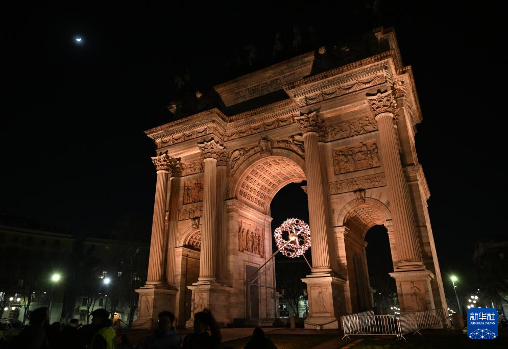这是2月22日在意大利米兰和平拱门拍摄的主火炬。