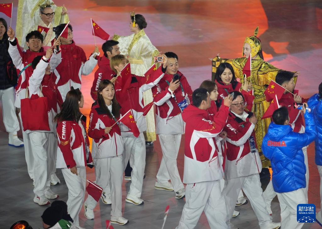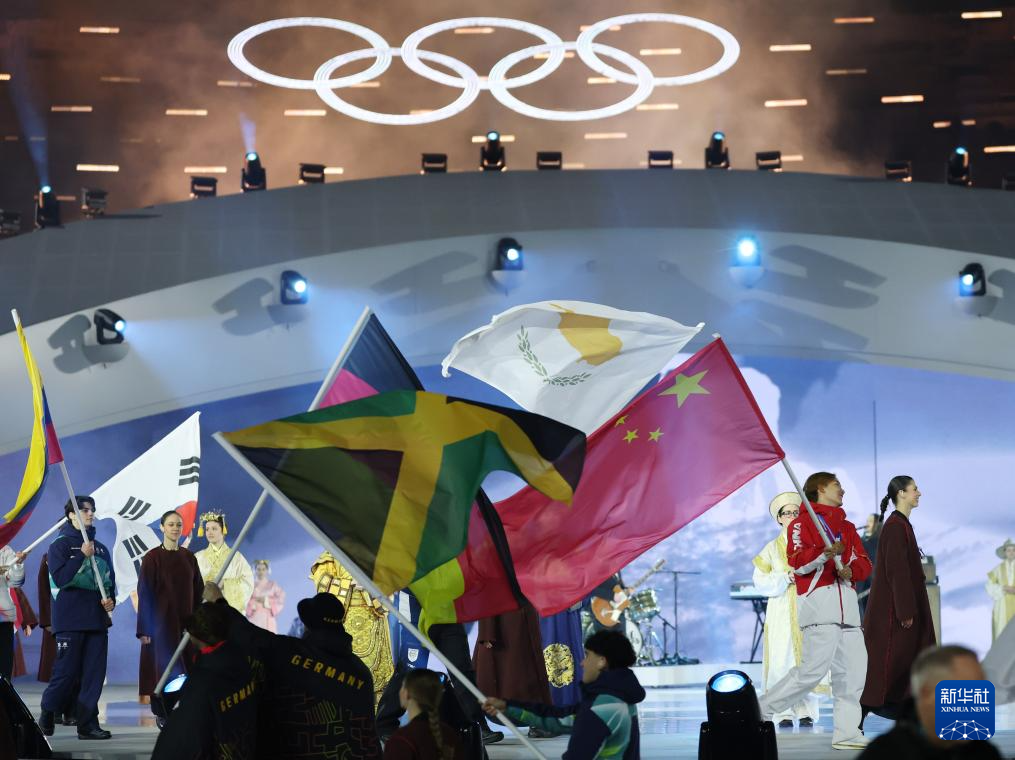2月22日,各体育代表团旗手在闭幕式上入场。