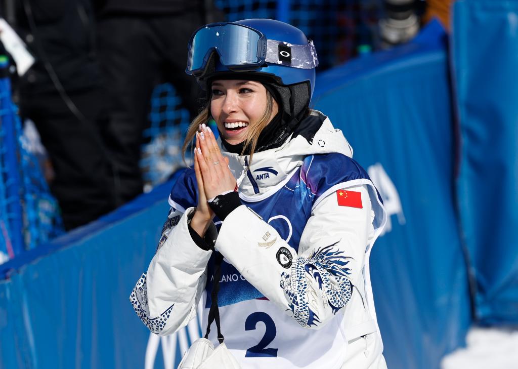 在22日的自由式滑雪女子U型场地技巧决赛中,谷爱凌那件令人惊艳的比赛服再现赛场。