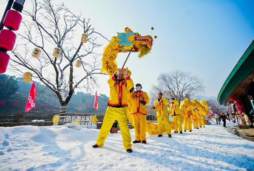 春节假期期间,“遇山半里”乡村振兴片区举行舞龙活动