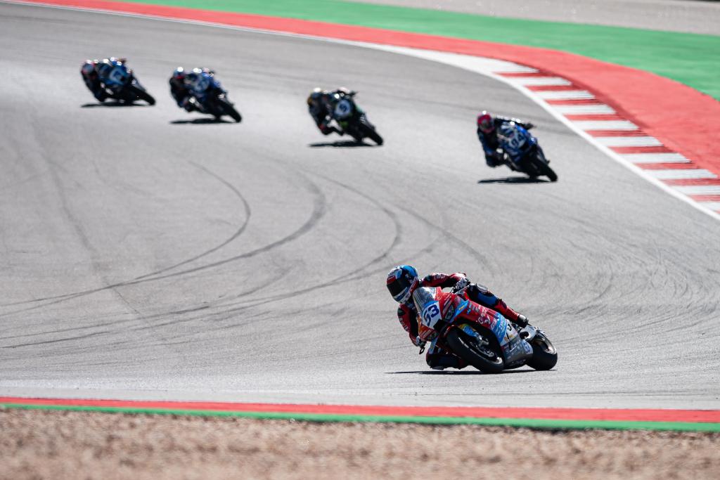 2026年3月28日,车手瓦伦丁·德比斯驾驶“张雪机车”(前)在葡萄牙举行的世界超级摩托车锦标赛双回合正赛中比赛。