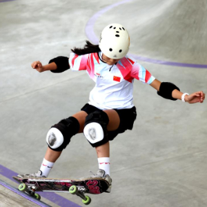 2026年亚洲滑板锦标赛女子碗池决赛现场。新华社发(姚永亮 摄)