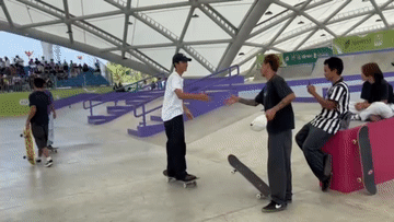 亚锦赛“Game of SKATE"参赛者彼此致意↑