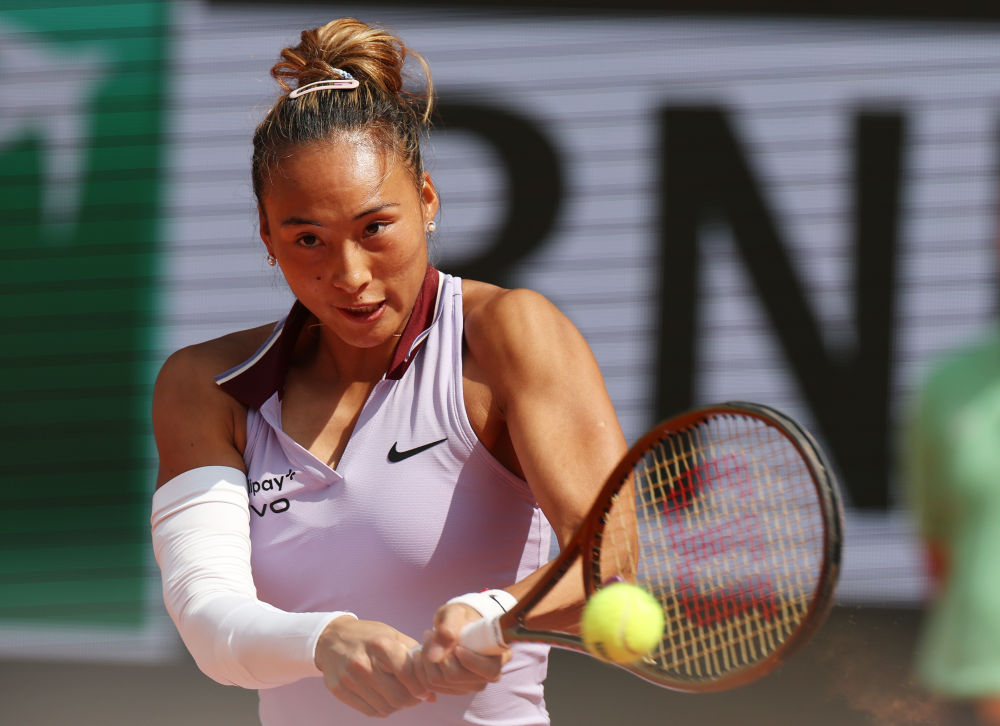 2025年6月3日,郑钦文在2025法国网球公开赛女子单打四分之一决赛中。新华社记者 高静 摄