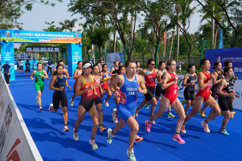 23日,三亚滨海沙滩、椰林碧海之间,亚沙会游跑两项男、女个人决赛举行。亚洲各地选手同台竞技、跑海逐浪,竞争激烈。中国选手整体表现亮眼,“夫妻档”范俊杰和林鑫瑜分别斩获男、女子个人项目金牌。本次参赛的中国队选手均来自国家铁人三项队,其中林鑫瑜曾在巴黎奥运会刷新中国队铁人三项女子个人项目历史最佳成绩。