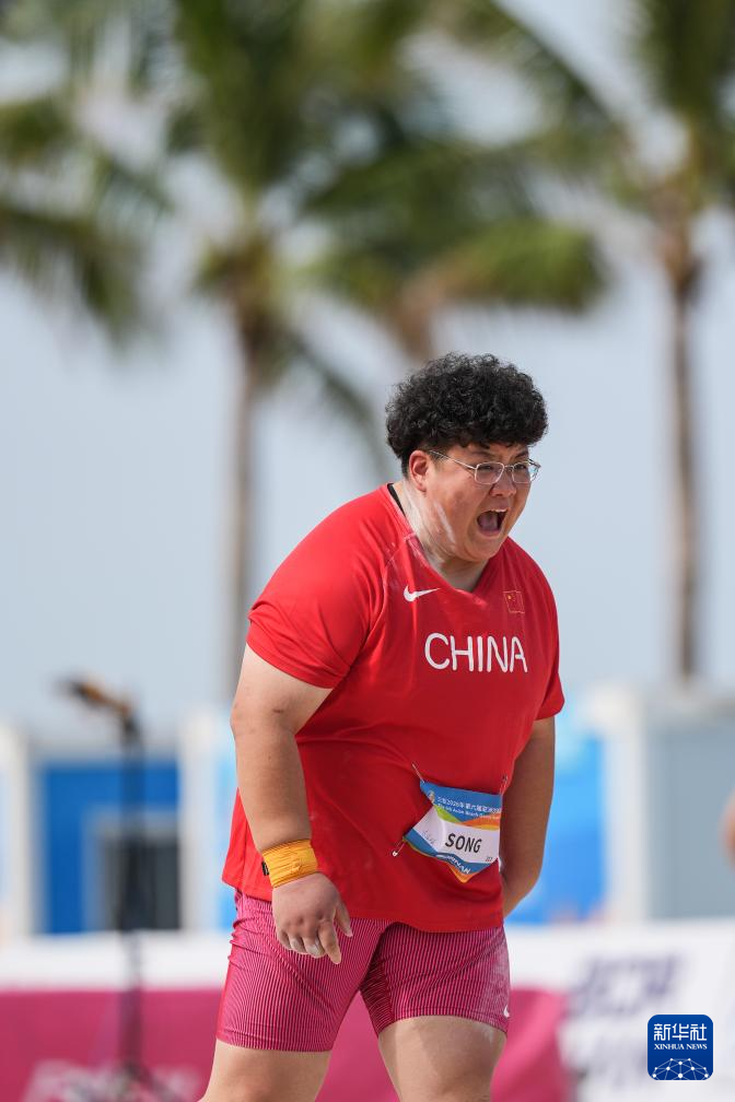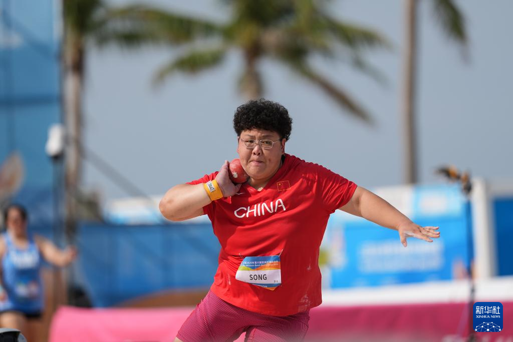 4月25日,在海南三亚举行的第六届亚洲沙滩运动会沙滩田径女子铅球决赛中,中国选手宋佳媛获得冠军,中国选手张林茹获得亚军,中国台北选手吴慈恩获得季军。