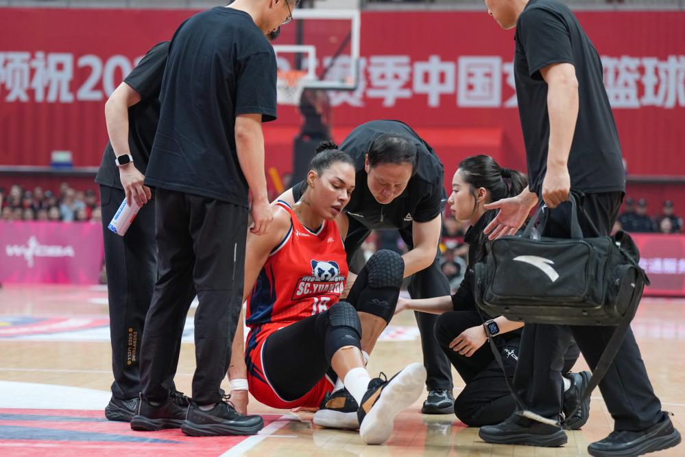 4月22日,坎贝奇在比赛中受伤离场。新华社记者 王曦 摄