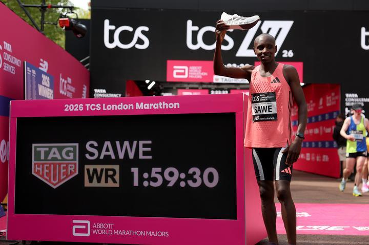 新华社伦敦4月26日电 肯尼亚人塞巴斯蒂安·萨维26日在伦敦马拉松赛中创造历史,他以1小时59分30秒的成绩在男子组中率先撞线,成为历史上首位在马拉松正式比赛中打破两小时的选手,埃塞俄比亚人克杰勒恰的马拉松首秀同样惊艳,以1小时59分41秒获得亚军。
