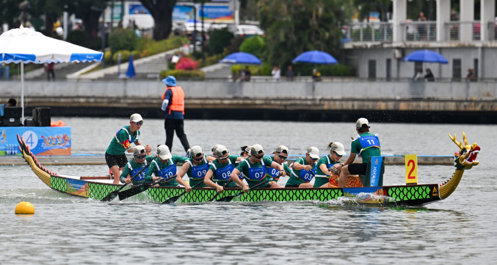 4月24日至26日,在海南三亚举行的第六届亚洲沙滩运动会龙舟项目中,中国队夺得龙舟项目全部6枚金牌中的5枚,展现出绝对实力。赛场上,来自亚洲不同国家和地区的队员们在桨影翻飞间,让这项运动焕发出鲜活生命力。