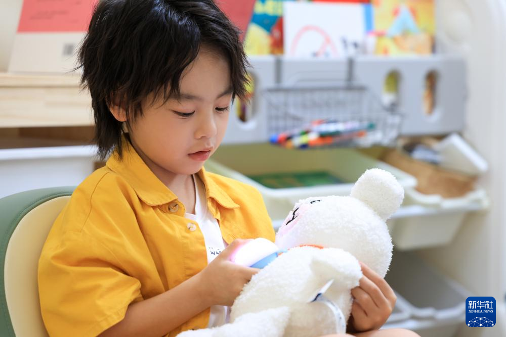 12月21日,在位于深圳的全球创新旗舰店inno100,一名儿童与AI玩具芙崽Fuzozo互动。