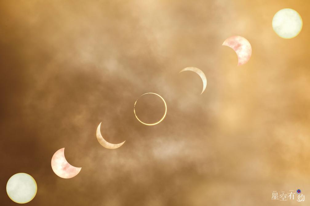 2020年6月21日,在西藏阿里拍摄的日环食(多张叠加)。(薛飞 摄)