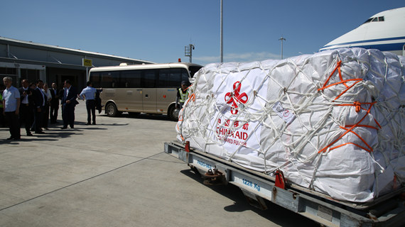 首批中国援柬埔寨紧急人道主义物资运抵金边