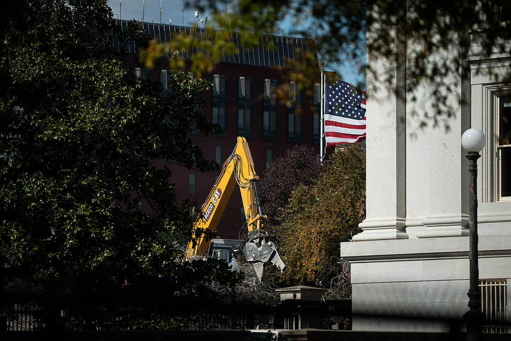 当地时间2025年10月23日,美国华盛顿,白宫东翼被拆除,为白宫新建的宴会厅扩建工程做准备。(图片来源:视觉中国)