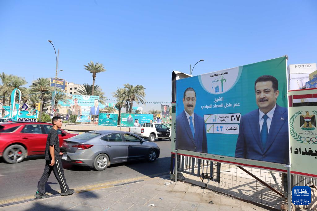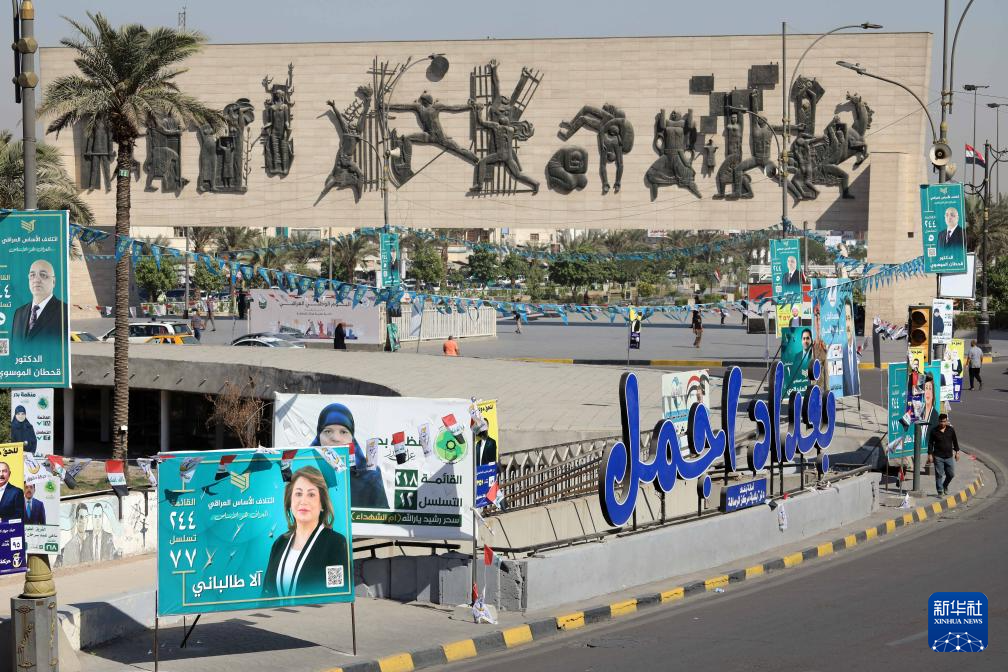 这是11月3日在伊拉克首都巴格达拍摄的国民议会选举海报。新华社发(哈利勒·达伍德摄)