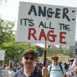 3月28日,人们在美国加利福尼亚州洛杉矶参加“不要国王”抗议活动。新华社发(曾慧摄)